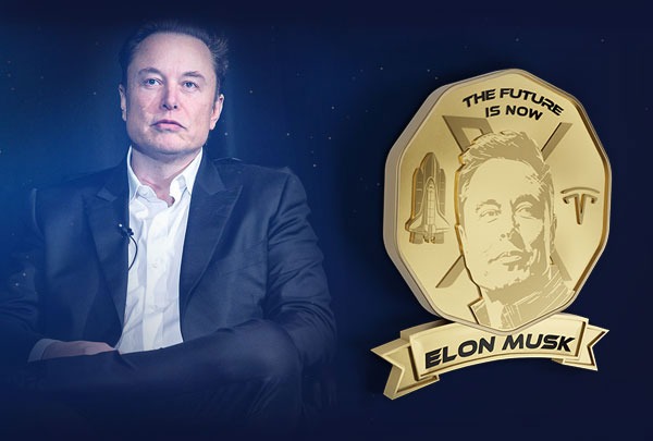 Features a portrait emboss of Elon Musk flanked by the symbols of his key ventures – SpaceX, Tesla & X – this medallion encapsulates the spirit of modern innovation.